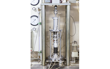 地中での圧力を維持したままアクリル製の容器の中に地下水を採取して溶存ガス成分を分析