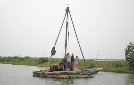 ベトナムにおける地質調査(軟弱地盤におけるボーリング調査)の様子